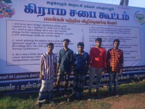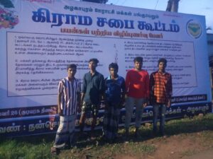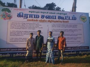 நன்செய் அறக்குழுவினர் சார்பாக மக்களுக்கு கிராம சபைக் குறித்த விழிப்புணர்வை ஏற்படுத்தும் நோக்கில் ஊரின் முக்கிய இடத்தில் கிராம சபைக் குறித்த விளம்பரப் பலகை வைக்கப்பட்டது.